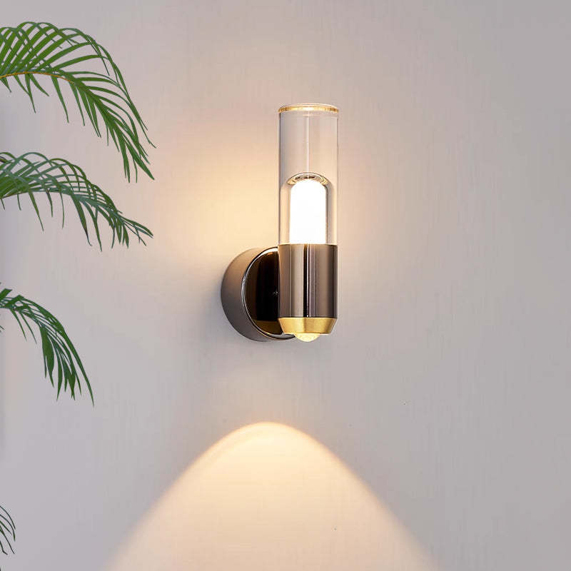 Illuminate your space with modern flair using this clear contemporary simple cylinder wall lamp. The sleek design of this wall lamp adds a minimalist touch to any room, while the clear cylinder shade provides a clean and sophisticated look.