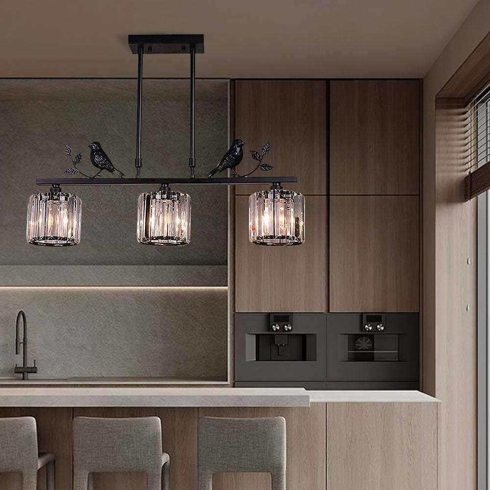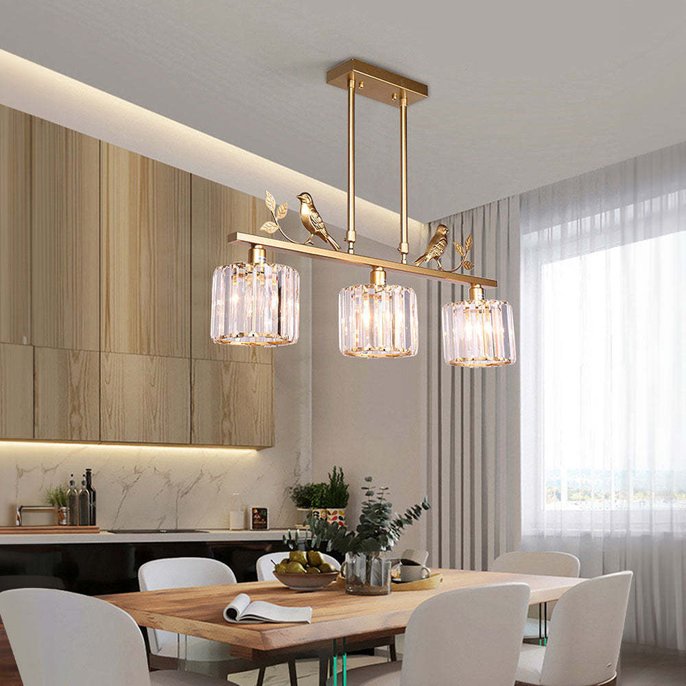 Gold Birdie Multi-Head Designer Long Crystal Island Lamps