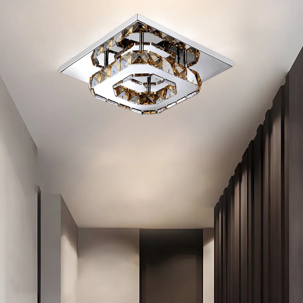 Combining industrial design with sparkling crystal accents, this fixture adds a touch of elegance and modern flair to your space. Its semi-flush mount design ensures even lighting, creating a warm and inviting ambiance perfect for any contemporary bedroom.
